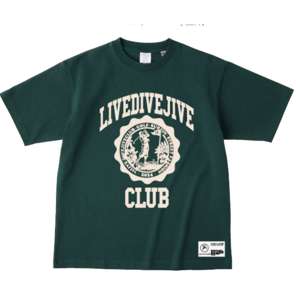 72LIVEDIVEJIVE カレッジ風Tシャツ ダークグリーン