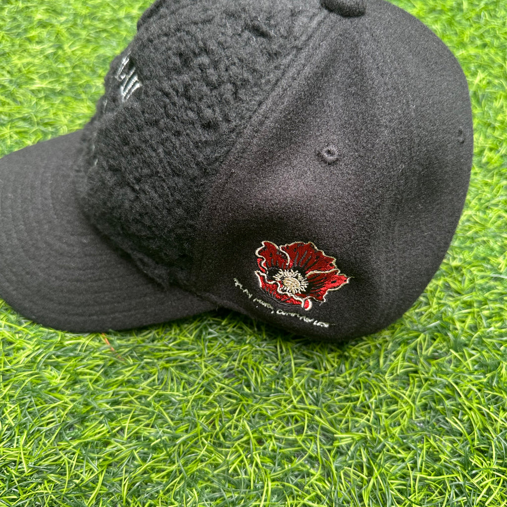 フロント部分がボア素材になった異素材使いの6パネルキャップ