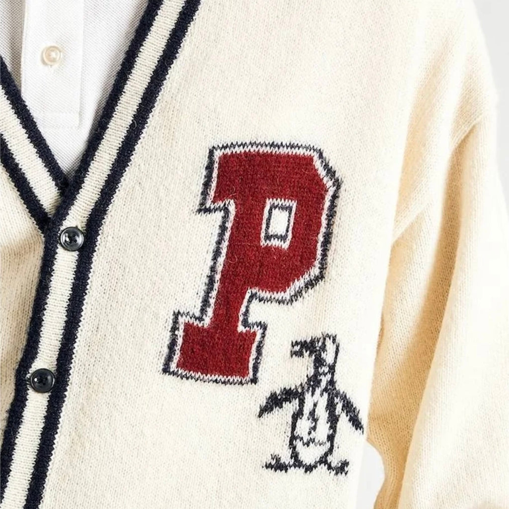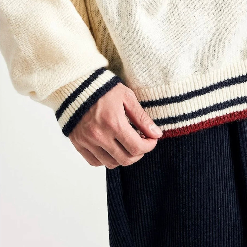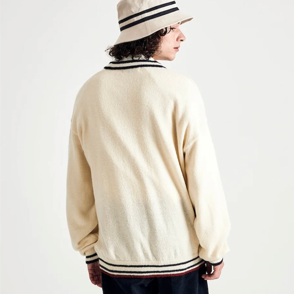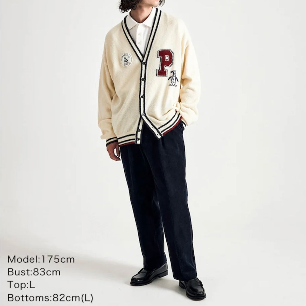 ・配色ラインやワッペンの組み合わせがプレッピーなカーディガン。