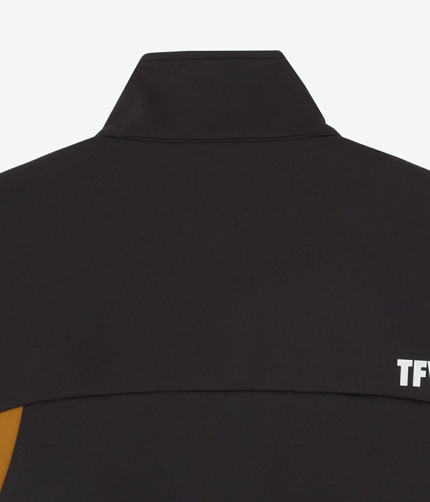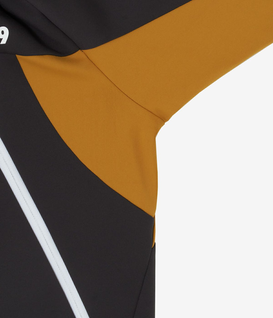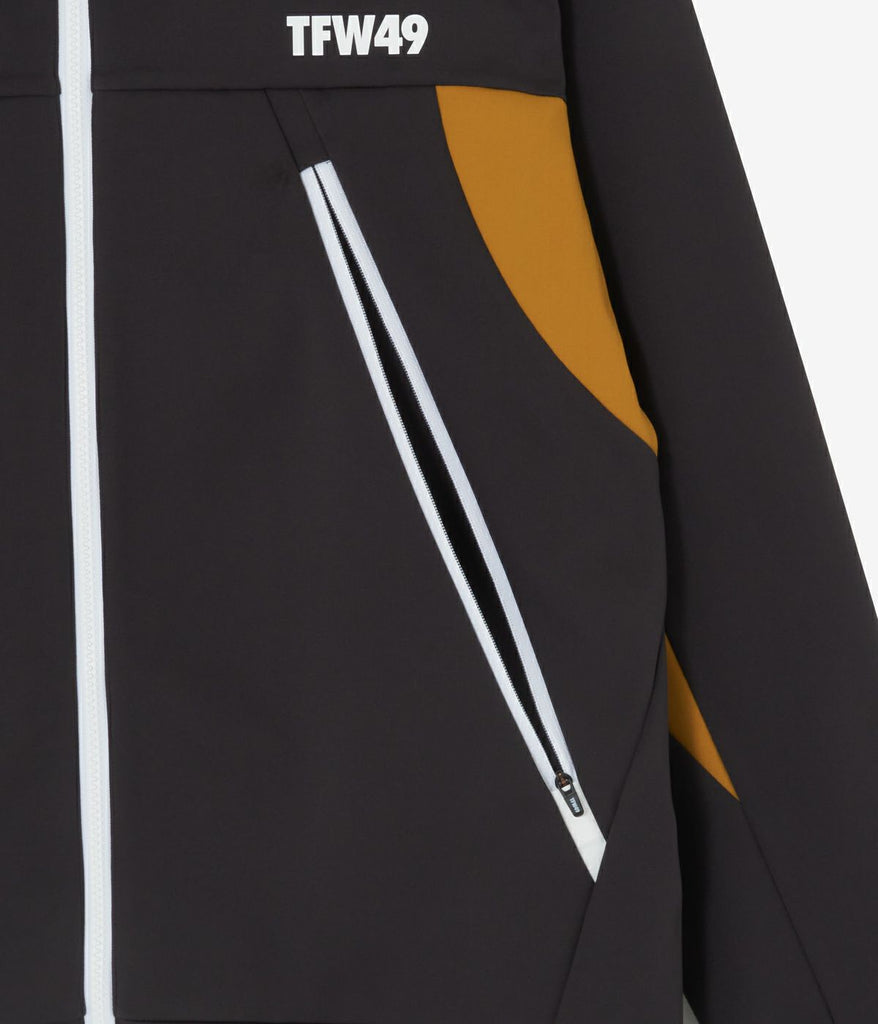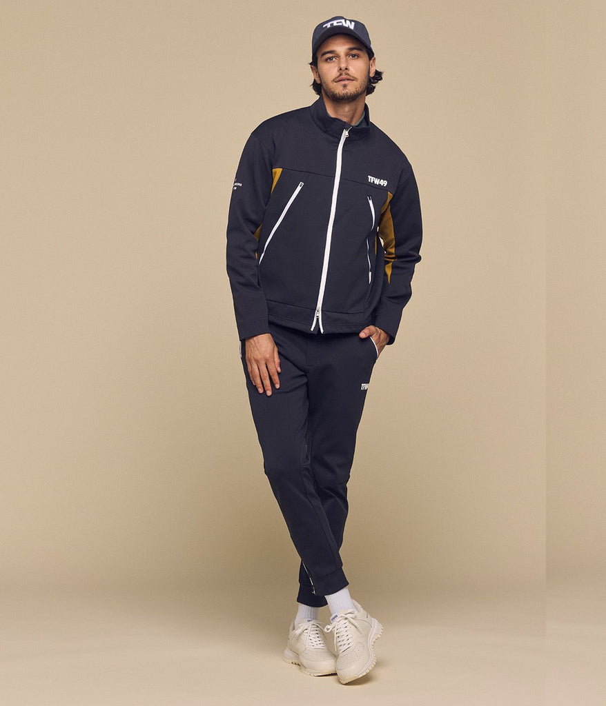 袖口下にはリブ、裾にはスピンドル仕様を採用し、防風性とフィット感を向上。前後身頃や袖下の切り替え部分にはストレッチ性に優れたメリル糸素材を使用し、運動性を高めながら洗練されたデザインに仕上げました。さらに、フロントファスナー下部にはNyタスラン素材を配し、配色アクセントとして視覚的なポイントをプラス。