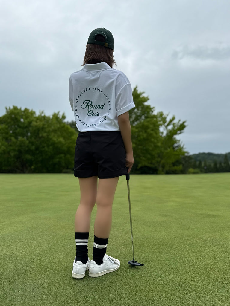 ORIGINAL ロールアップバックプリントポロシャツ ホワイト