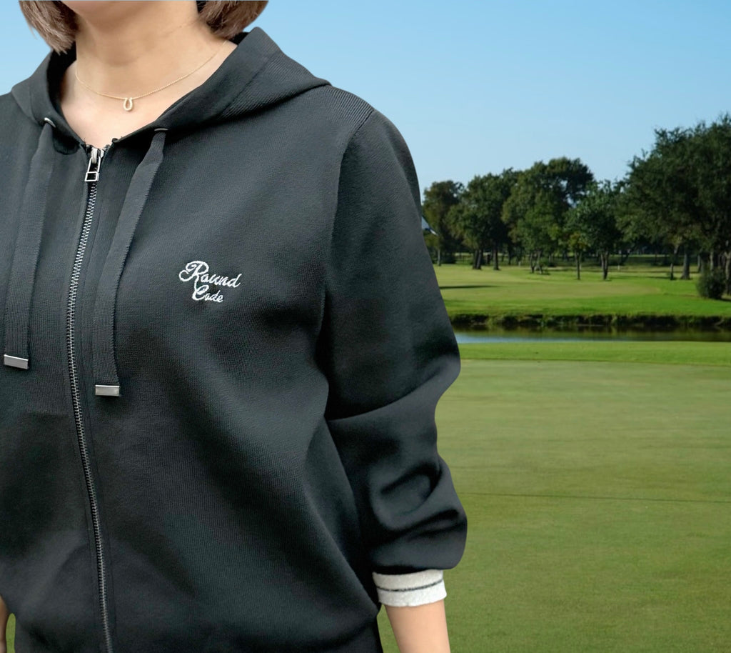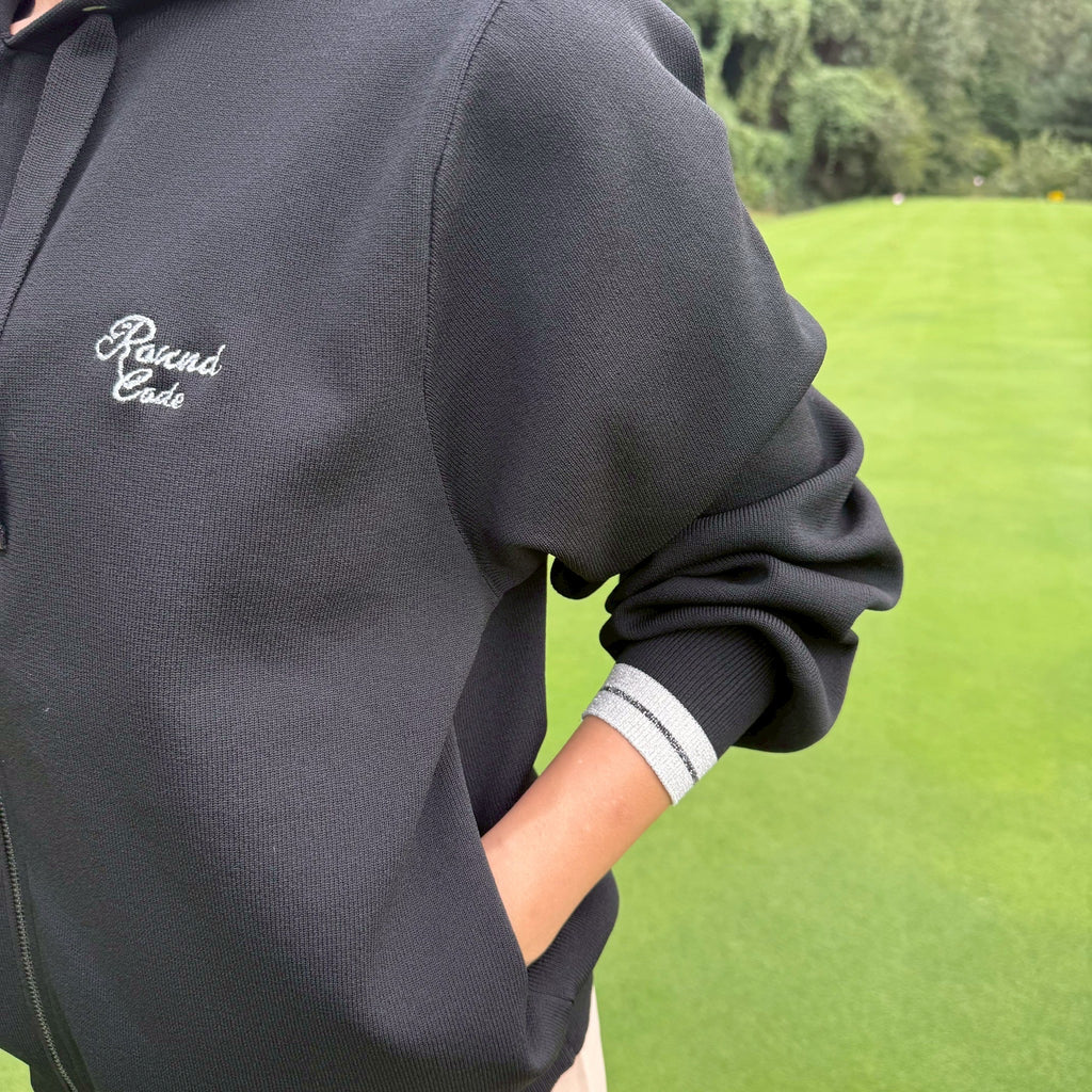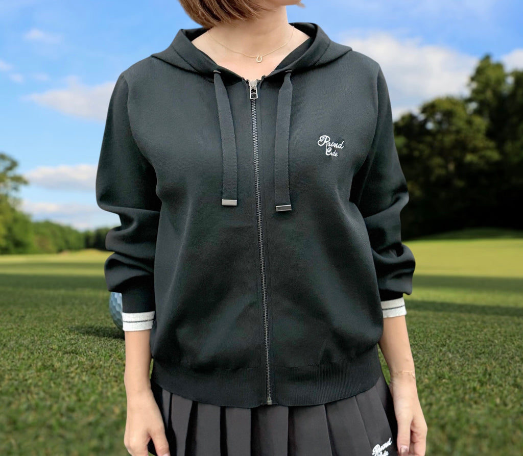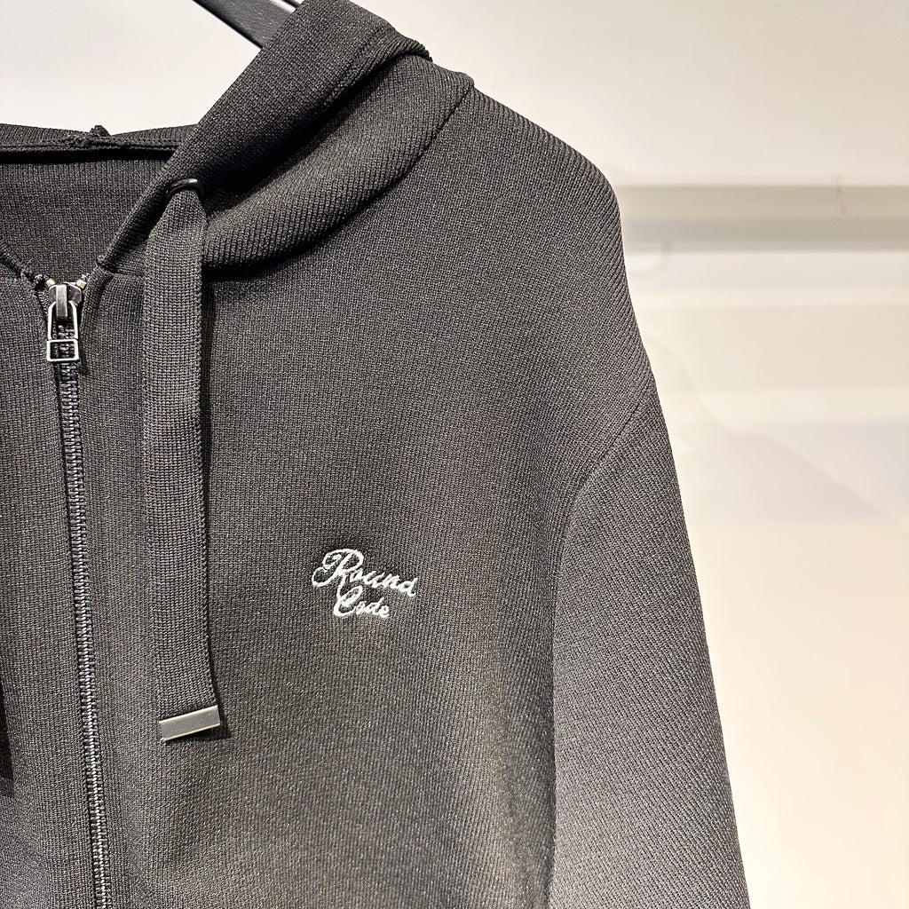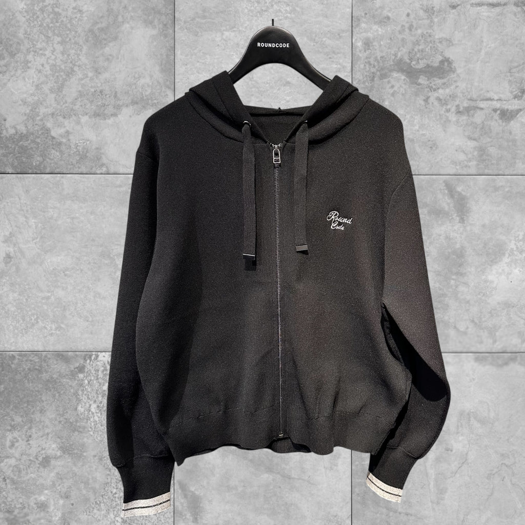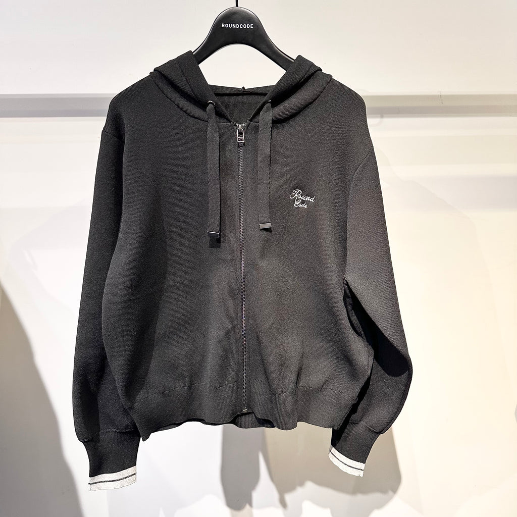 ROUNDCODE オリジナル ジップアップ軽量ニットパーカー ブラック